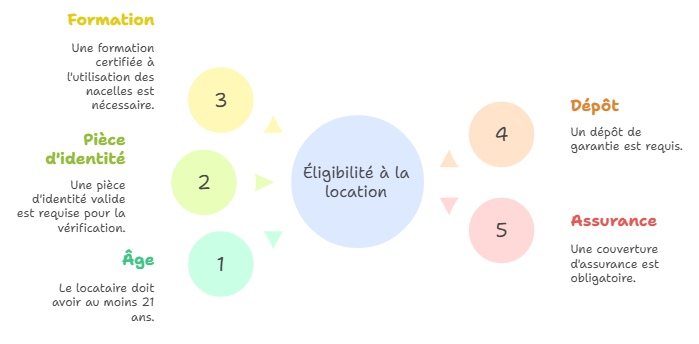 Pour pouvoir louer un camion nacelle, vous devez respecter les exigences suivantes :