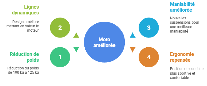 - Réduction drastique du poids à seulement 125 kg (contre plus de 190 kg d’origine)