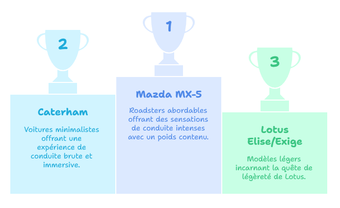 Malgré la tendance généralisée à l’augmentation du poids des véhicules, certains constructeurs perpétuent aujourd’hui l’héritage de Colin Chapman. En 2025, plusieurs modèles continuent d’incarner cette philosophie de la légèreté comme facteur clé de performance et de plaisir de conduite.